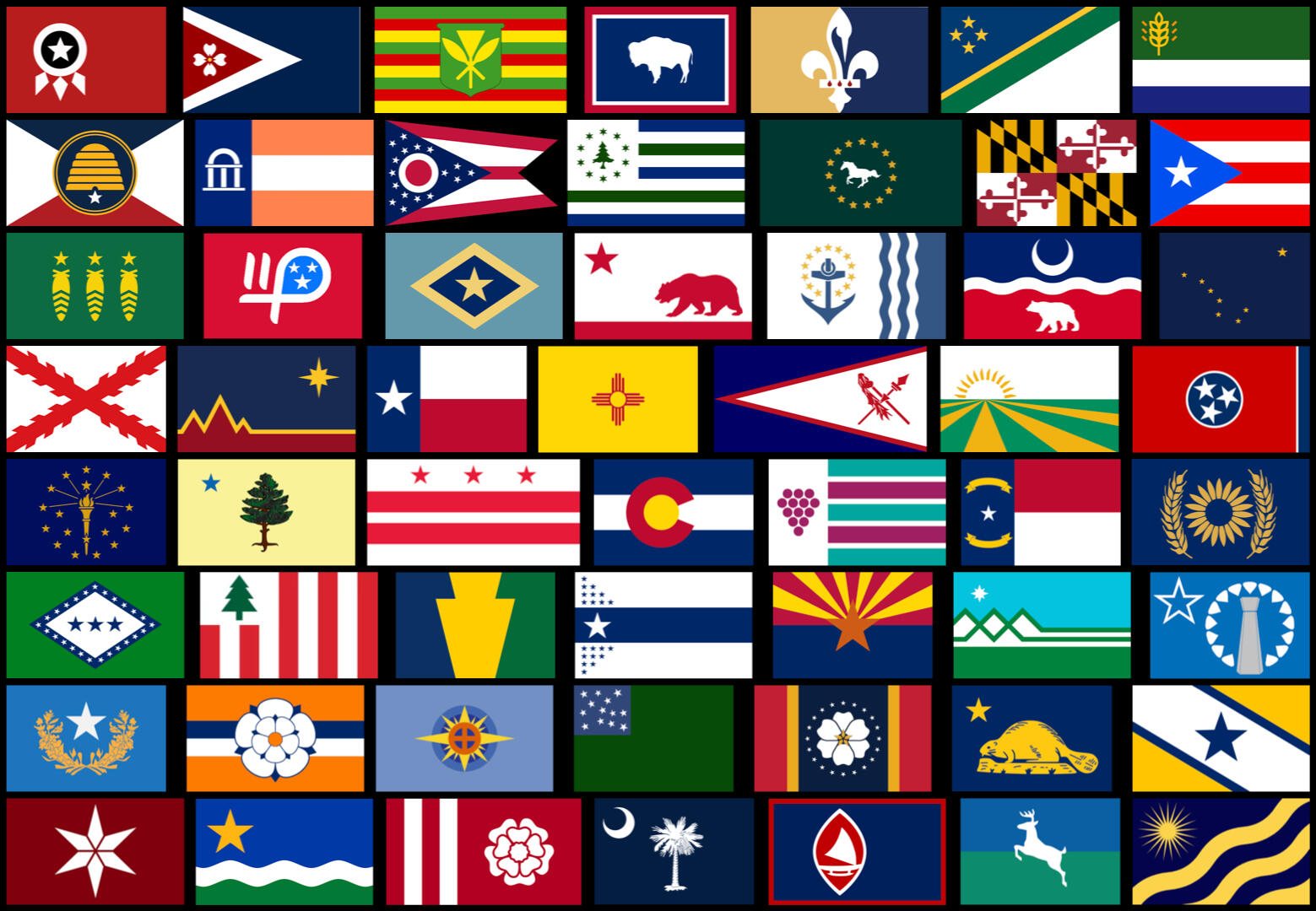 In a time where our divisions are more visible than they have ever been, it’s imperative that we have an iconic symbol to rally under that can remind us of our shared interest in this Commonwealth and in each other. While a Coat of Arms can be a representative of government, a flag represents a people, and a good flag can become an icon that is blended into the cultural fabric of a community.-Now, a quick experiment. Below are the flags of 50 states, five US territories, and DC. How quickly can you find Pennsylvania?