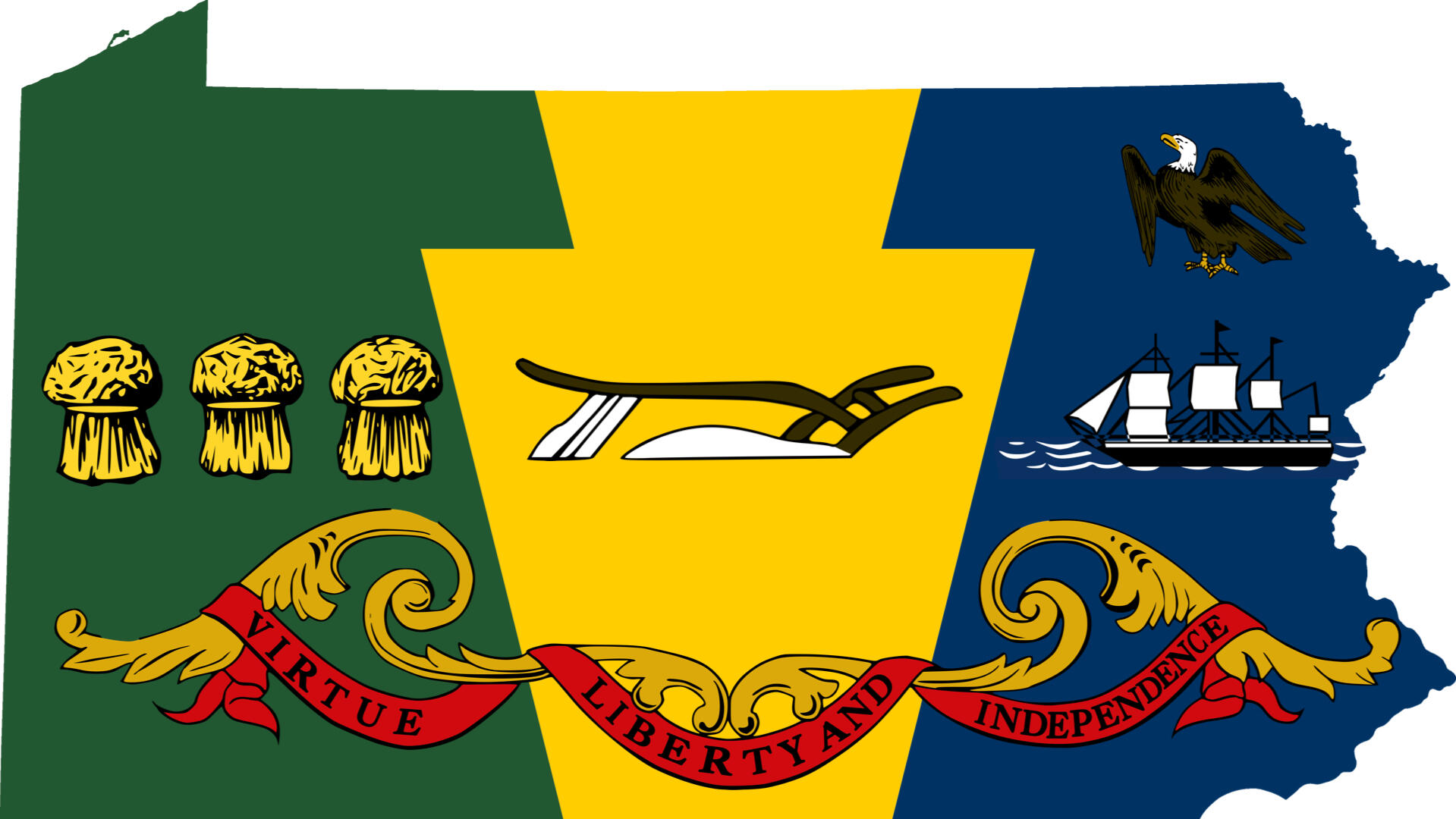 Well. You might be able to tell that's Pennsylvania... when the flag's not telling you it's AINAVLYSNNEP. (Our motto flies backwards, too.)PA has a great coat of arms.