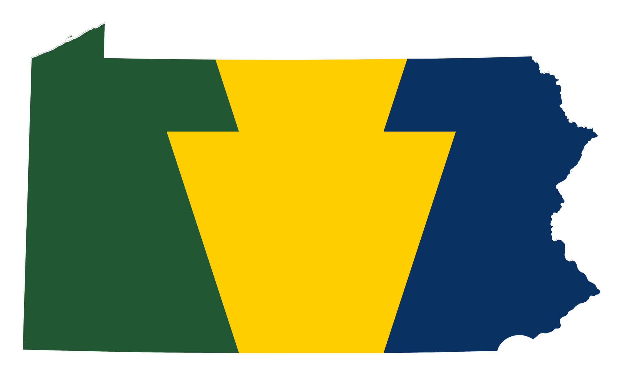 And a fun bonus: green, gold, and blue just so happens to create a (very) rough map of our west-to-east geography: green for our western hills and mountains, gold for rich farmland in much of the midstate, and blue for our eastern border along the Delaware river, home to many points that facilitate state commerce.